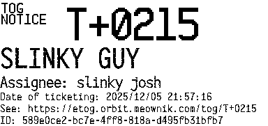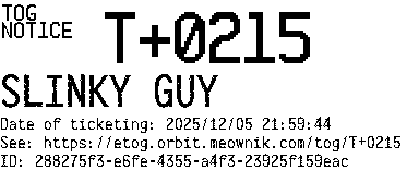 Orbit eTOG Listing Service: T+0215 SLINKY GUY