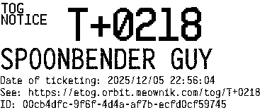 Orbit eTOG Listing Service: T+0218 SPOONBENDER GUY