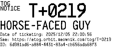 Orbit eTOG Listing Service: T+0219 HORSE-FACED GUY