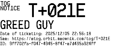 Orbit eTOG Listing Service: T+021E GREED GUY