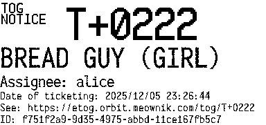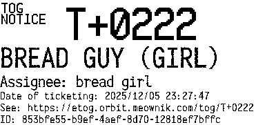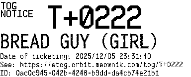 Orbit eTOG Listing Service: T+0222 BREAD GUY (GIRL)