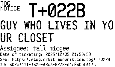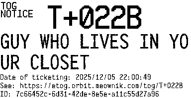 Orbit eTOG Listing Service: T+022B GUY WHO LIVES IN YOUR CLOSET