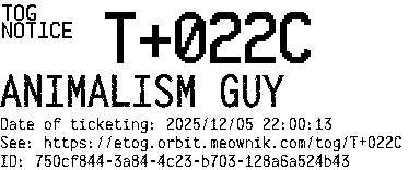 Orbit eTOG Listing Service: T+022C ANIMALISM GUY