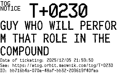 Orbit eTOG Listing Service: T+0230 GUY WHO WILL PERFORM THAT ROLE IN THE COMPOUND