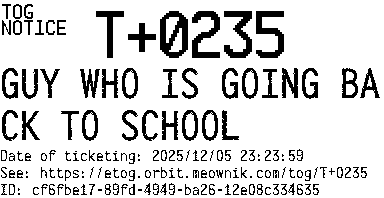 Orbit eTOG Listing Service: T+0235 GUY WHO IS GOING BACK TO SCHOOL