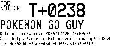 Orbit eTOG Listing Service: T+0238 POKEMON GO GUY