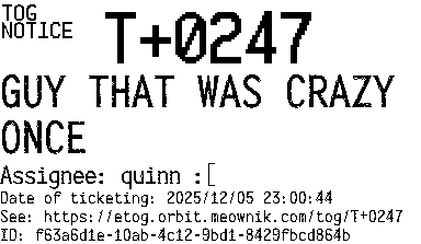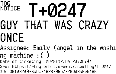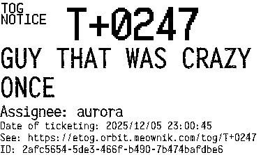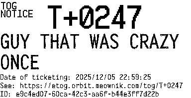 Orbit eTOG Listing Service: T+0247 GUY THAT WAS CRAZY ONCE