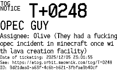 Orbit eTOG Listing Service: T+0248 OPEC GUY