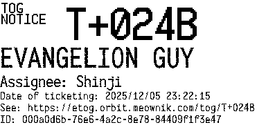 Orbit eTOG Listing Service: T+024B EVANGELION GUY