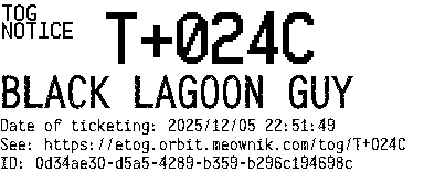 Orbit eTOG Listing Service: T+024C BLACK LAGOON GUY