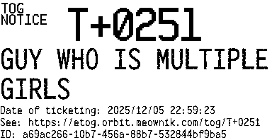 Orbit eTOG Listing Service: T+0251 GUY WHO IS MULTIPLE GIRLS