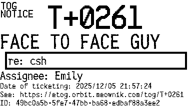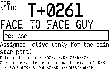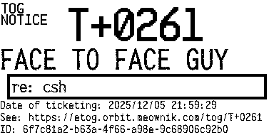 Orbit eTOG Listing Service: T+0261 FACE TO FACE GUY
