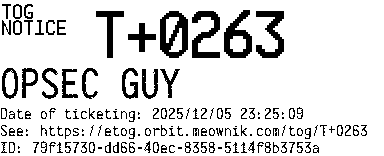 Orbit eTOG Listing Service: T+0263 OPSEC GUY
