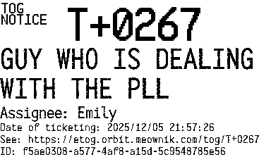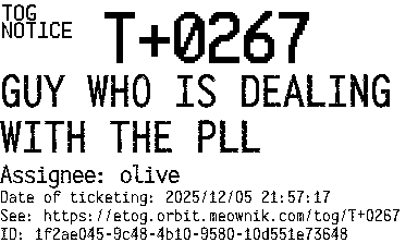 Orbit eTOG Listing Service: T+0267 GUY WHO IS DEALING WITH THE PLL