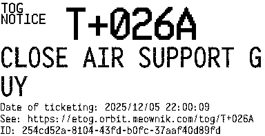 Orbit eTOG Listing Service: T+026A CLOSE AIR SUPPORT GUY