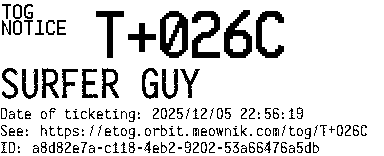 Orbit eTOG Listing Service: T+026C SURFER GUY