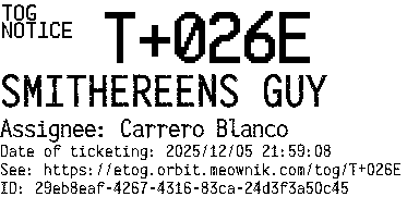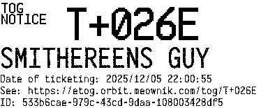 Orbit eTOG Listing Service: T+026E SMITHEREENS GUY