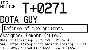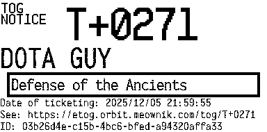 Orbit eTOG Listing Service: T+0271 DOTA GUY