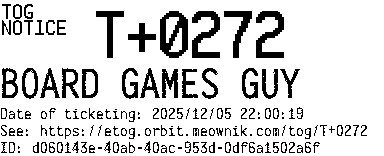 Orbit eTOG Listing Service: T+0272 BOARD GAMES GUY