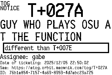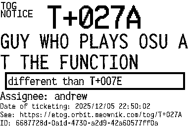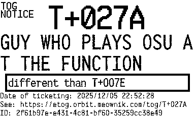 Orbit eTOG Listing Service: T+027A GUY WHO PLAYS OSU AT THE FUNCTION