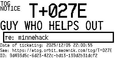Orbit eTOG Listing Service: T+027E GUY WHO HELPS OUT