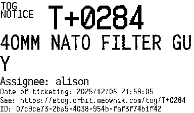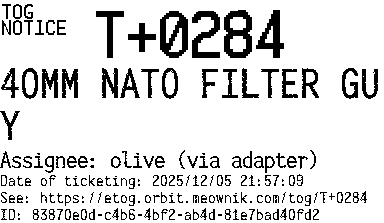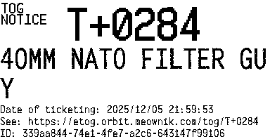 Orbit eTOG Listing Service: T+0284 40MM NATO FILTER GUY