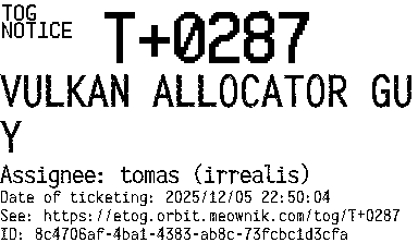 Orbit eTOG Listing Service: T+0287 VULKAN ALLOCATOR GUY