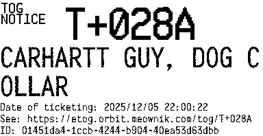 Orbit eTOG Listing Service: T+028A CARHARTT GUY, DOG COLLAR