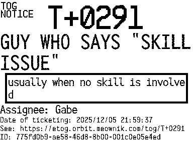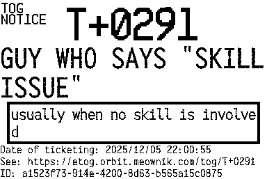 Orbit eTOG Listing Service: T+0291 GUY WHO SAYS "SKILL ISSUE"