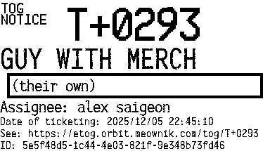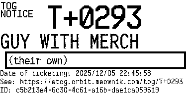 Orbit eTOG Listing Service: T+0293 GUY WITH MERCH