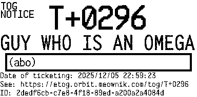 Orbit eTOG Listing Service: T+0296 GUY WHO IS AN OMEGA