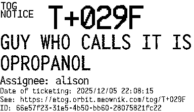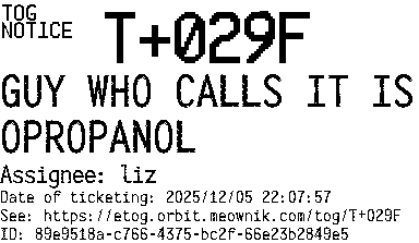Orbit eTOG Listing Service: T+029F GUY WHO CALLS IT ISOPROPANOL