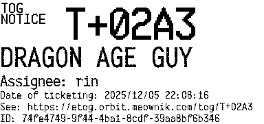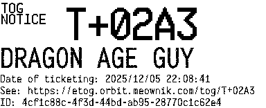 Orbit eTOG Listing Service: T+02A3 DRAGON AGE GUY