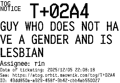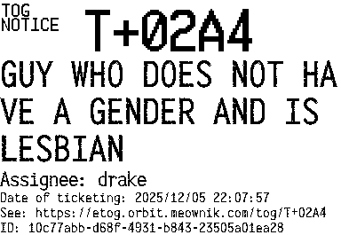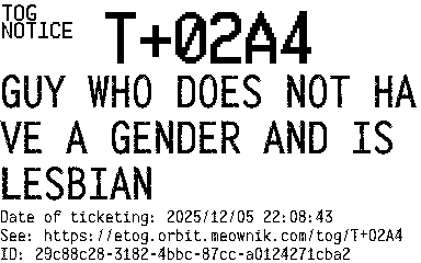 Orbit eTOG Listing Service: T+02A4 GUY WHO DOES NOT HAVE A GENDER AND IS LESBIAN