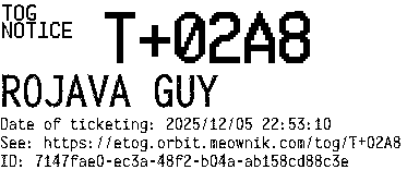 Orbit eTOG Listing Service: T+02A8 ROJAVA GUY