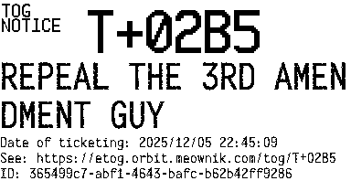 Orbit eTOG Listing Service: T+02B5 REPEAL THE 3RD AMENDMENT GUY