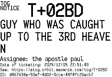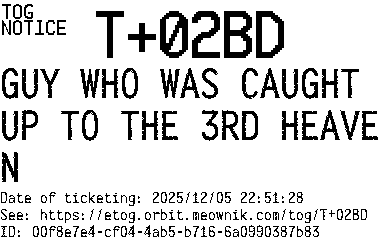 Orbit eTOG Listing Service: T+02BD GUY WHO WAS CAUGHT UP TO THE 3RD HEAVEN