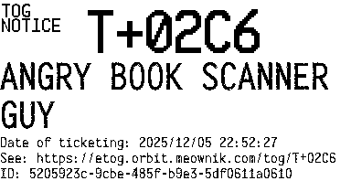 Orbit eTOG Listing Service: T+02C6 ANGRY BOOK SCANNER GUY