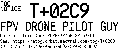 Orbit eTOG Listing Service: T+02C9 FPV DRONE PILOT GUY