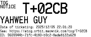 Orbit eTOG Listing Service: T+02CB YAHWEH GUY