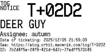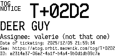 Orbit eTOG Listing Service: T+02D2 DEER GUY