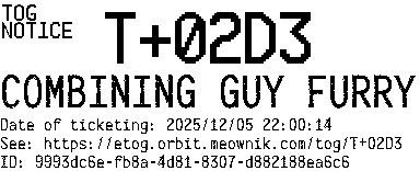 Orbit eTOG Listing Service: T+02D3 COMBINING GUY FURRY