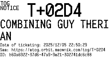 Orbit eTOG Listing Service: T+02D4 COMBINING GUY THERIAN