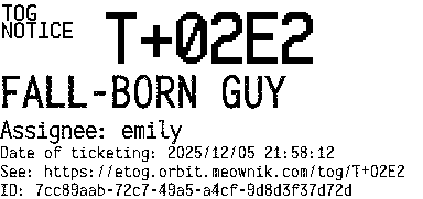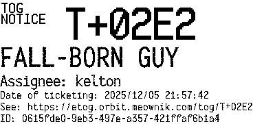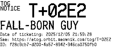 Orbit eTOG Listing Service: T+02E2 FALL-BORN GUY