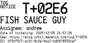 Orbit eTOG Listing Service: T+02E6 FISH SAUCE GUY