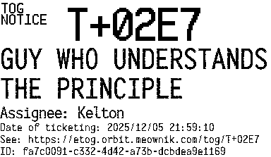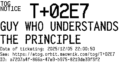Orbit eTOG Listing Service: T+02E7 GUY WHO UNDERSTANDS THE PRINCIPLE