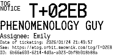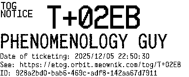 Orbit eTOG Listing Service: T+02EB PHENOMENOLOGY GUY