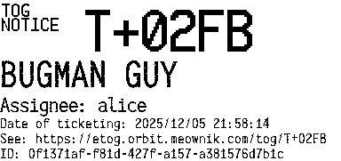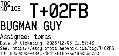 Orbit eTOG Listing Service: T+02FB BUGMAN GUY