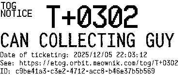 Orbit eTOG Listing Service: T+0302 CAN COLLECTING GUY