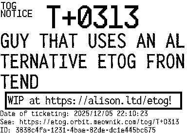Description: WIP at https://alison.ltd/etog!